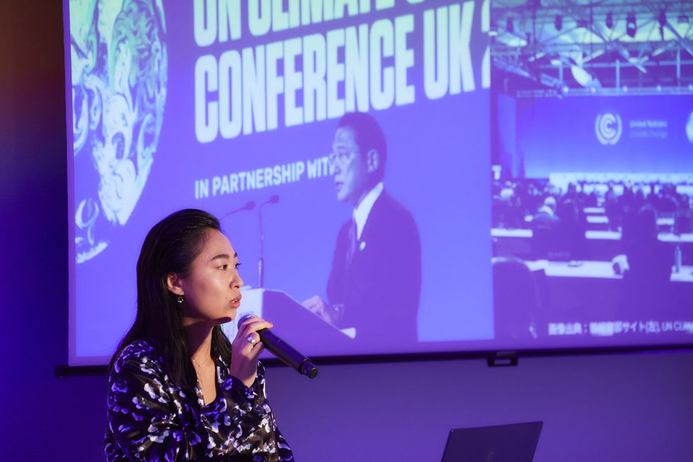 ともに20代のふたりが、気候危機を自分ごととして考え、解決に向けコミットしていくことの大切さについて和やかにトークを行いました。佐座は「すべての人が地球をつくる、いちプレイヤー。そう考えれば、地球のために何かできることはないかという気持ちが湧いてくる」と伝えました。