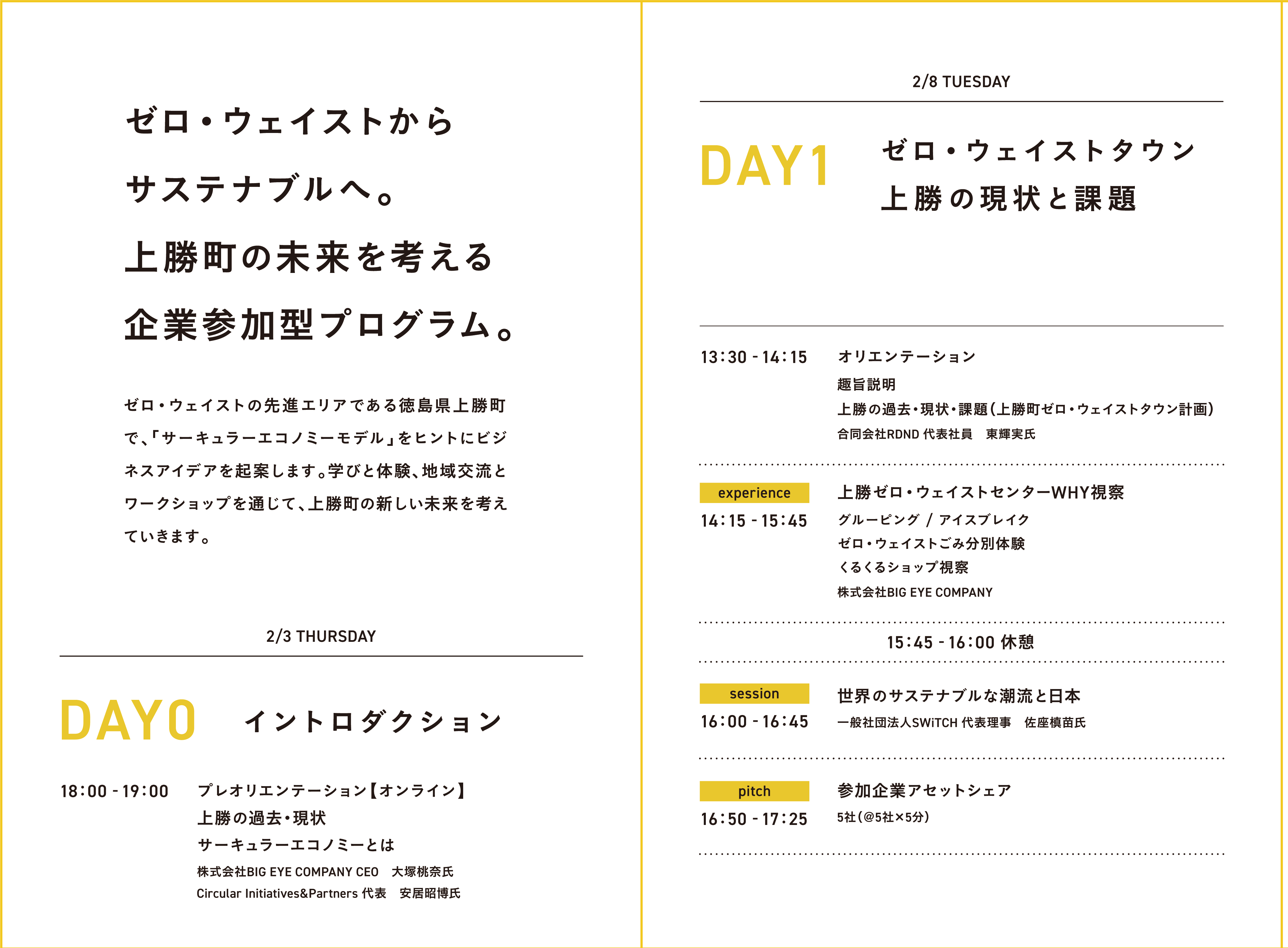 「サーキュラーエコノミーモデル」をヒントにビジネスアイデアを起案し、学びと体験、地域交流とワークショップを通じて上勝町の新しい未来を考えていくこのプログラムは、3日間に渡り、上勝町ゼロ・ウェイストセンターにて行われました。