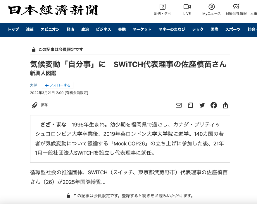日経新聞3月21日版に単独インタビューが掲載されました!
