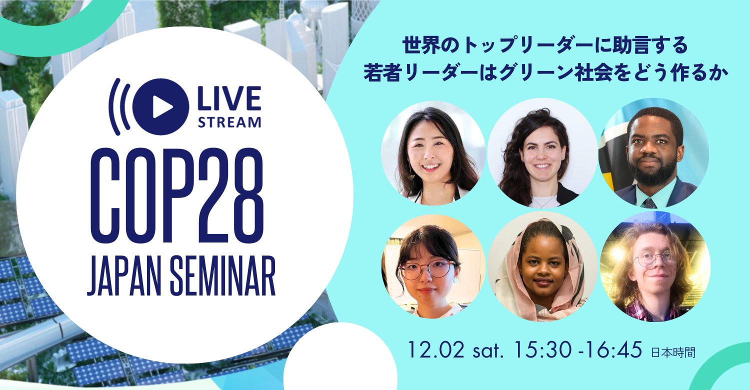 アントニオ・グテーレス氏をはじめとする世界のトップリーダーに助言を行っている、若者リーダー6名が登壇。気候教育を通して、グリーン社会への変革を加速し、世代を越えた共同体制をどのように実現できるかについて対話を行い、COP28会場から生配信しました。