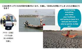 レクチャーの中ではメキシコ出身の大学生「イヴァン」とイラク出身の若者「アサラ」から自分たちが来た国で起きている気候変動の現状についての説明がありました。