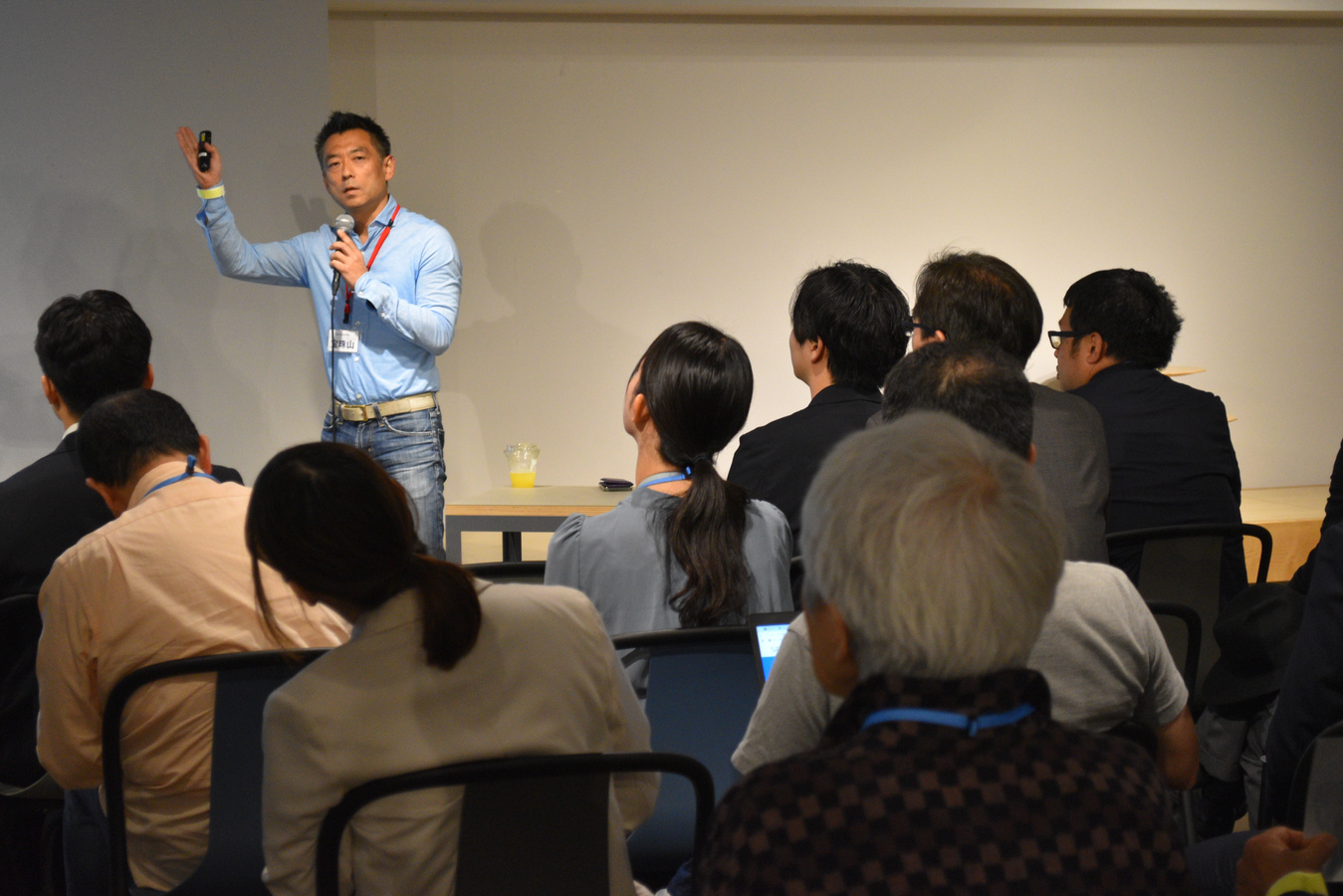 本イベントファシリテーターの佐座が開会挨拶を行いました。渋谷など都市部で深刻化する猛暑とヒートアイランド現象を背景 に、急激な気温上昇が高齢者や子供の健康に及ぼす影響を指摘し、最新データでは日本が気候変動対策の個人意識で低評価となっており、従来の温室効果ガス削減(緩和)策だけでなく、熱中症対策など適応策の重要性が増していることを説明しました。 さらに、具体例としてプールサイドの白色塗装による温度低減や、通風の良い経路利用など実生活での工夫を紹介。加えて、環境技術・循環型システムを推進するスタートアップによる新たな取組みを通じ、企業や自治体と連携した実践的対策の普及を訴えました。