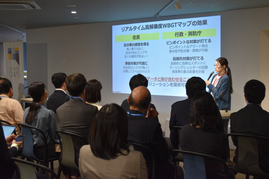 回答:主に行政の方に活用していただきたいと考えています。例えばクーリングシェルターの配置などの計画策定時に役立てていただけます。また、民間企業や自治会、住民の方にも使っていただきたいです。特に屋外活動を管理する立場の方にとって、熱中症対策の判断材料として重要だと思います。