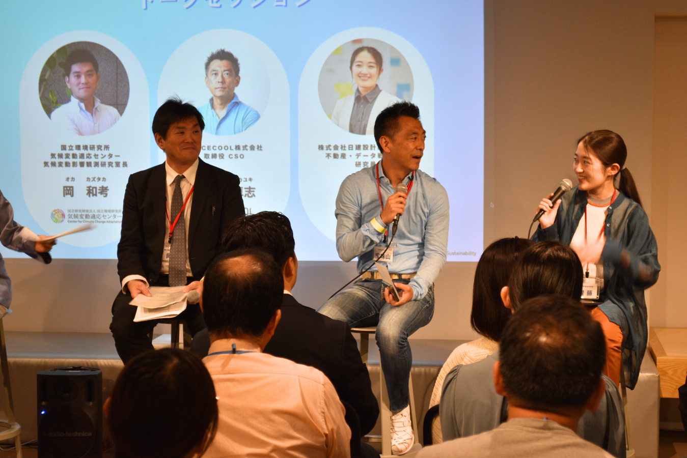 その後、各登壇者の気候変動適応に向けた取り組みについてご紹介いただき、参加者からの質疑応答も行いました。後半には佐座と各登壇者を交えてトークセッションを行い、それぞれの専門分野を活かした社会 実装のあり方やそのために必要な行動変容についても議論が交わされました。最後は参加者同士の交流会の時間となりました。