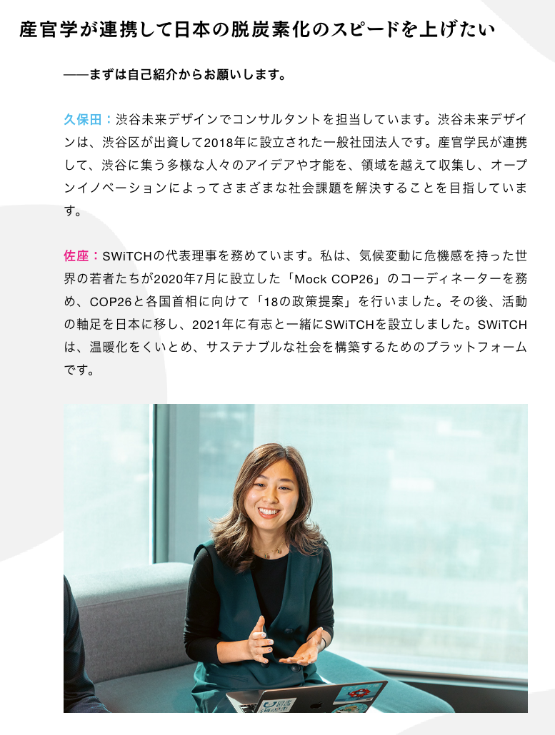掲載媒体:ウェブ電通報 公開日:2024年3月11日 記事タイトル:CNUD始動!脱炭素化の「渋谷モデル」をつくる