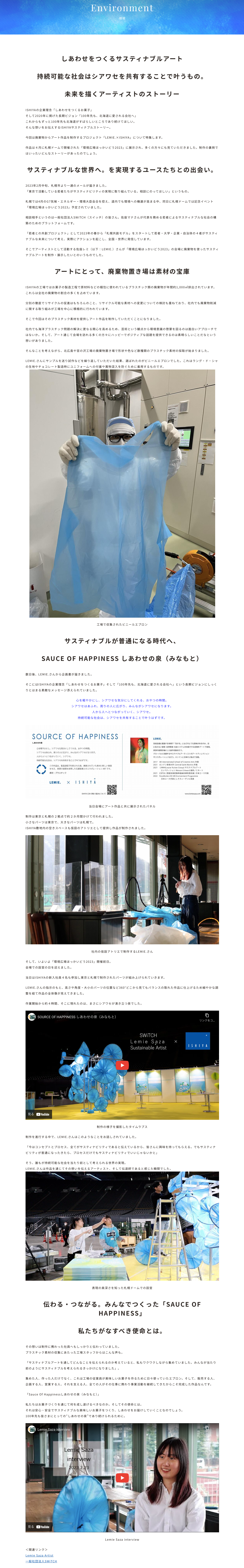 2023年4月「G7気候・エネルギー・環境大臣会合」の際に行われたSWiTCHアーティストLEMIE.によるアート展示のバックストーリーがISHIYAのサイトで特集されました!