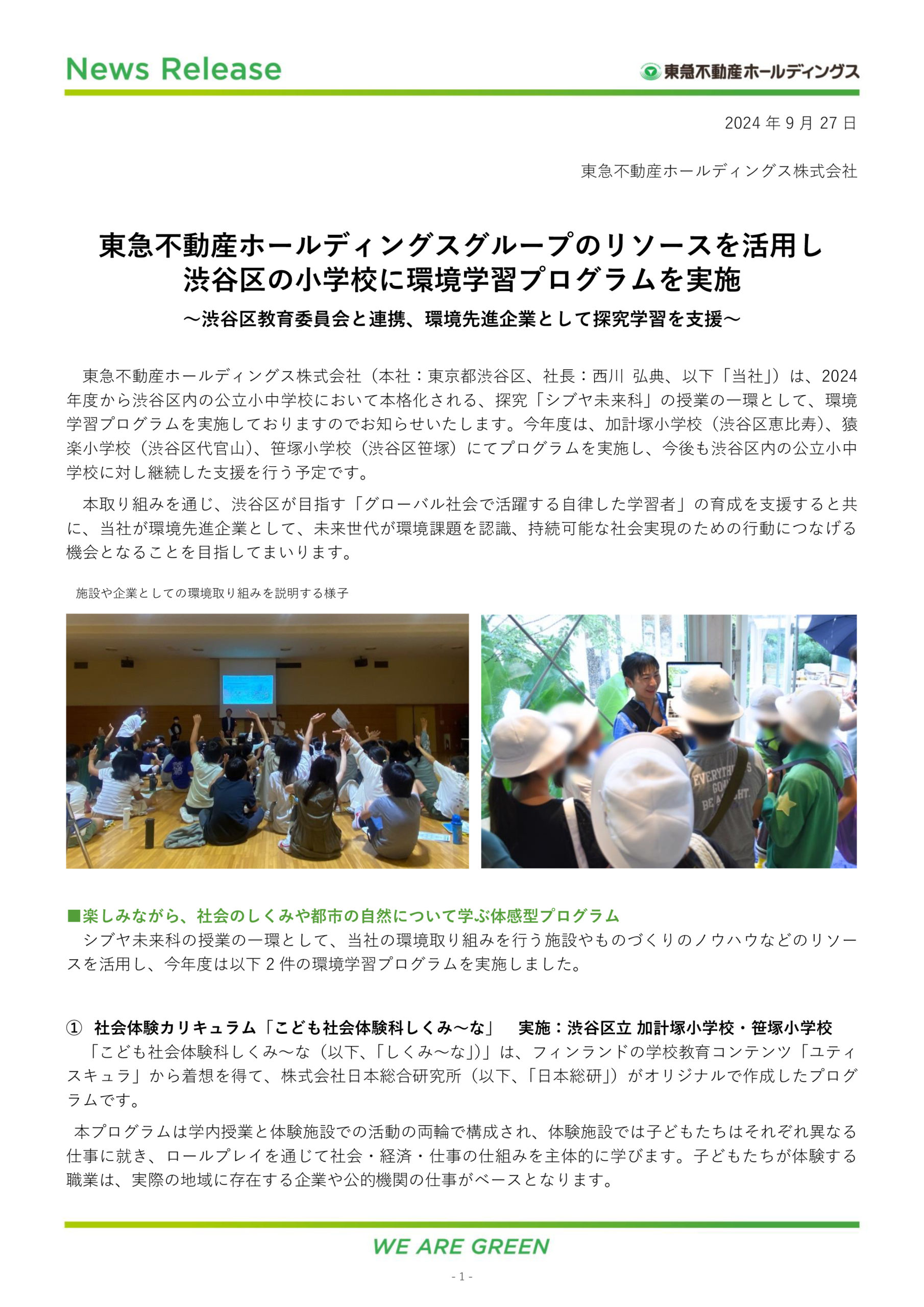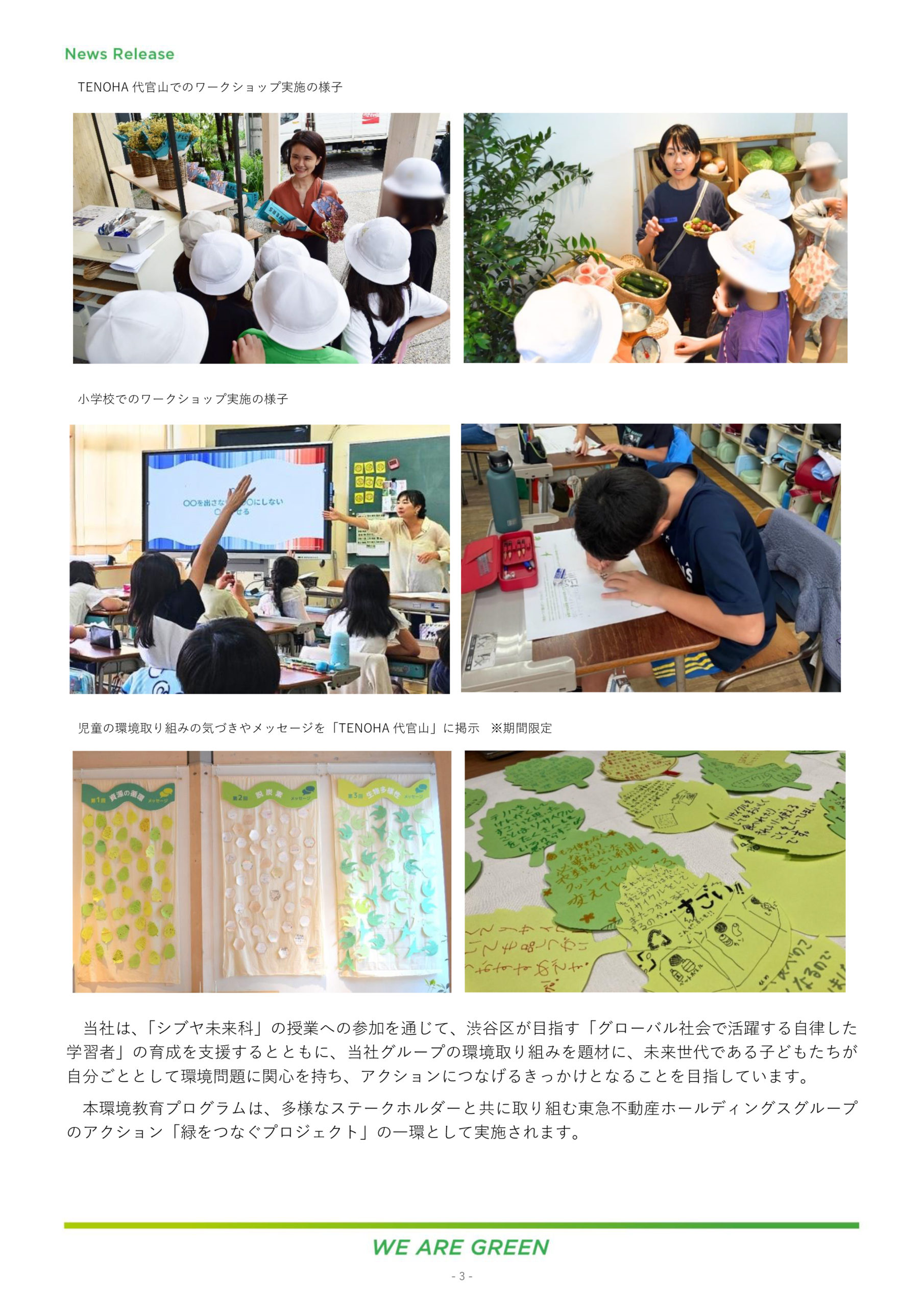 「地球一つで暮らすワークショップ」が東急不動産のリリースで紹介されました!