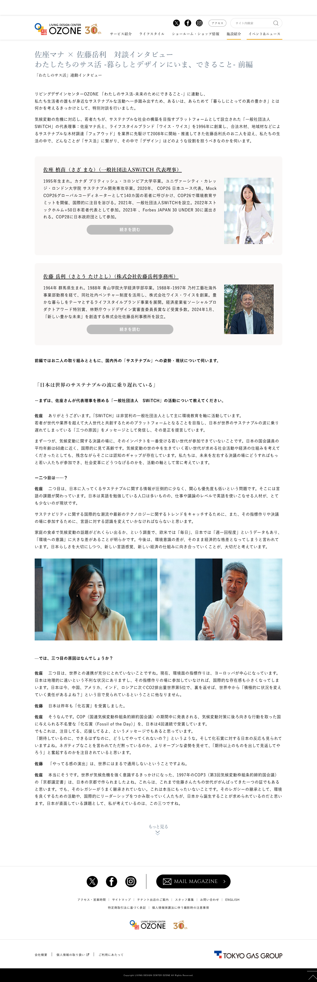 リビングデザインセンターOZONE 「わたしのサス活-未来のためにできること-」に連動して行われた佐座マナと佐藤岳利氏の特別対談の記事がOZONE公式サイトで公開されました。
