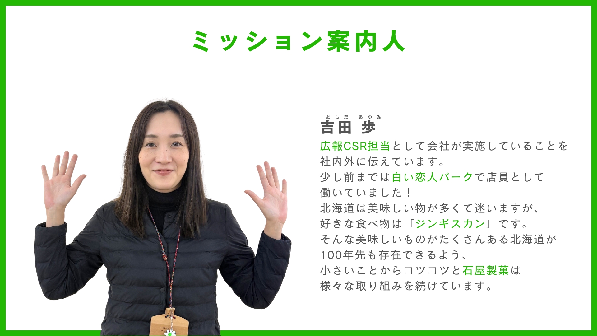 「白い恋人のパッケージと北海道の環境ワークショップ」 会場:Route148 〒063-0051 北海道札幌市西区宮の沢1条1丁目4-3 |