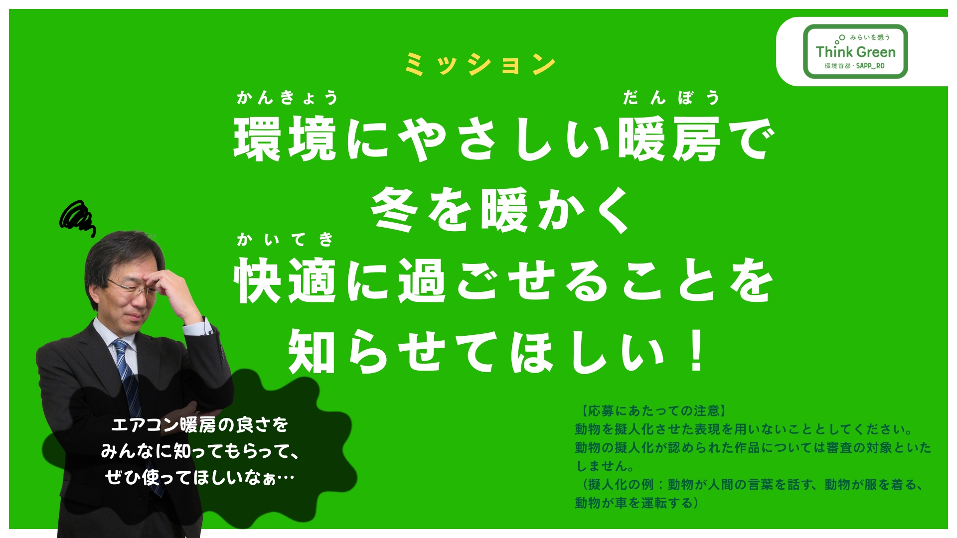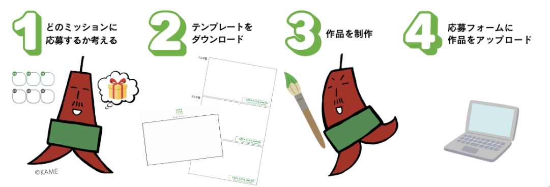 | 作品形式 | 以下①~②のいずれかの形式 ①3コマ漫画(縦横比16:9の横型3枚) ①テンプレートはこちら ②ポスター(縦横比16:9の横型1枚) ②テンプレートはこちら |
