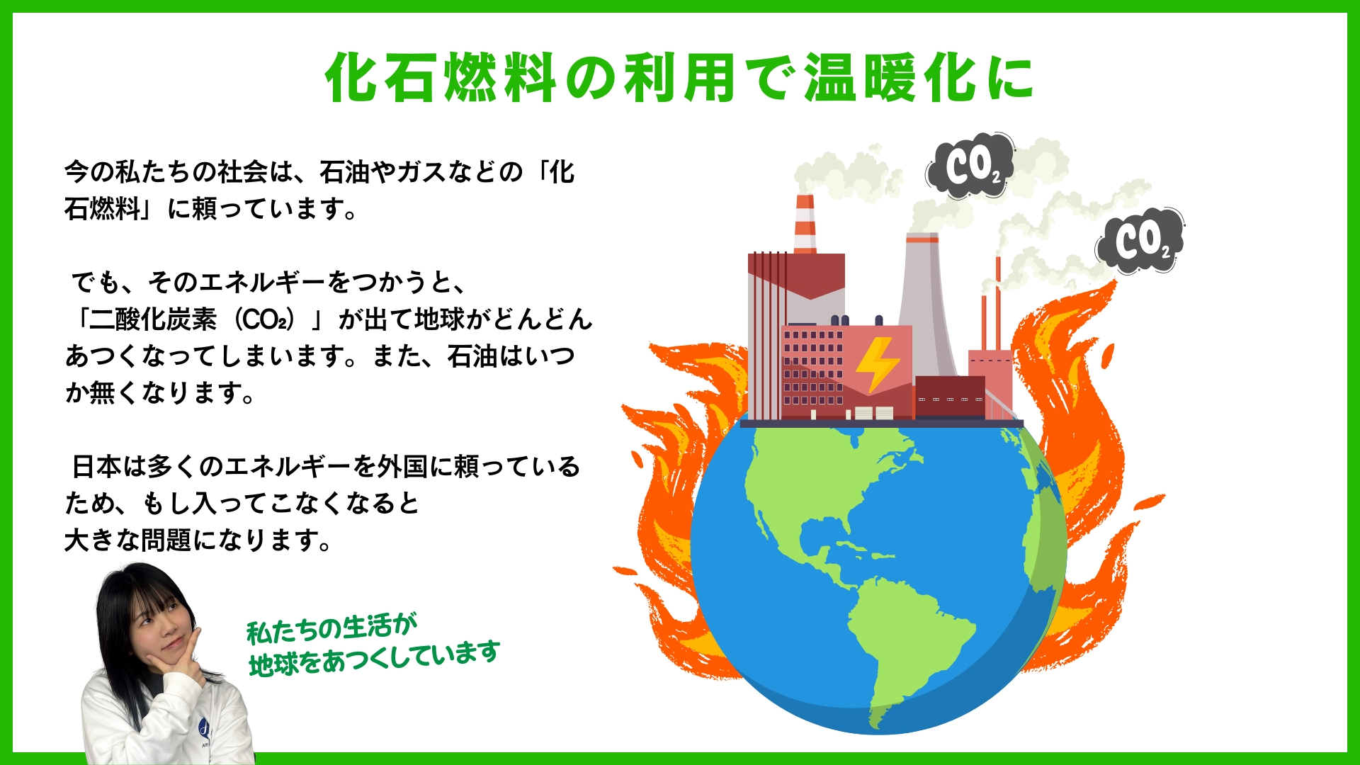地球温暖化が加速する中、グリーン人材の育成が必要とされています。
