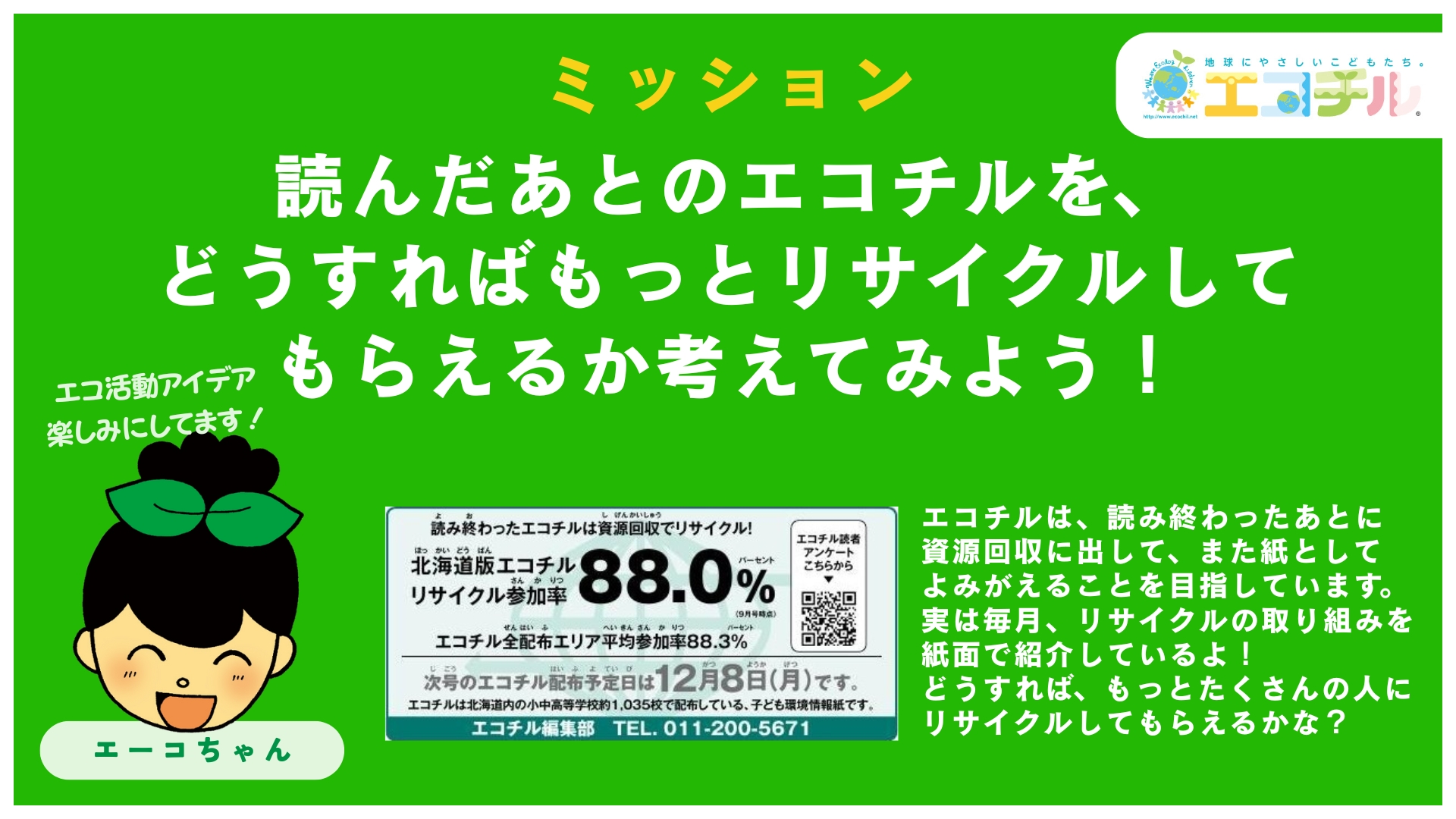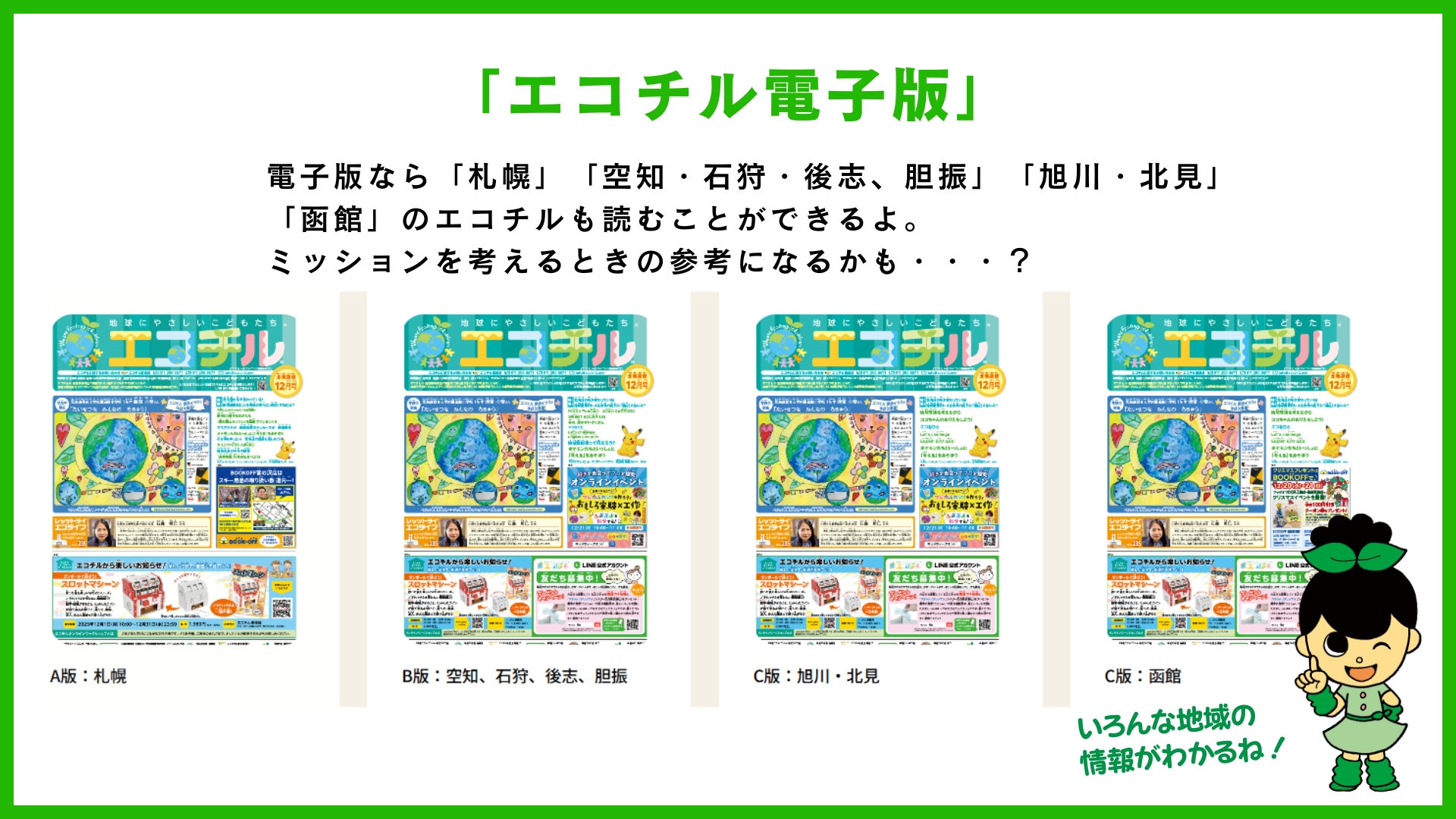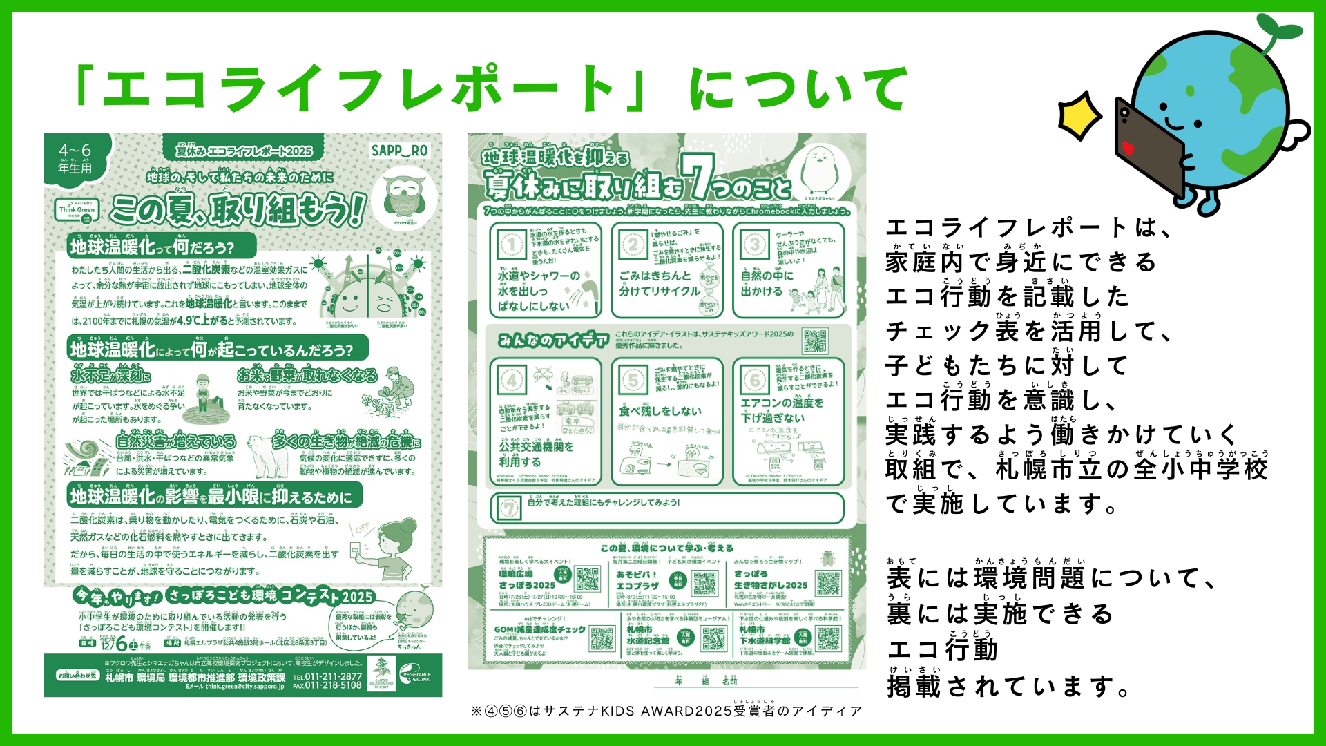 札幌市の全小中学校に配布するエコライフレポートに受賞者のアイデアを掲載します。(予定)