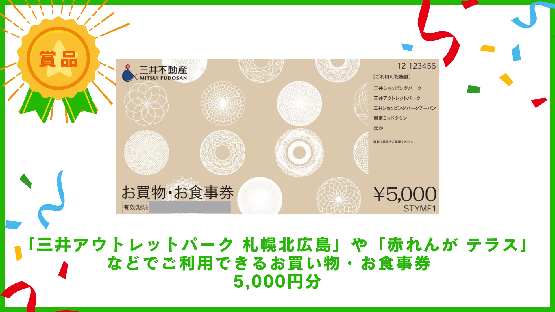 「三井アウトレットパーク 札幌北広島」や「赤れんが テラス」などでご利用できるお買い物・お食事券