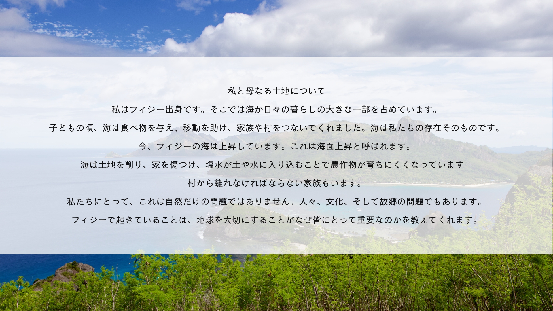 大人世代が知ってほしい、そして、あらゆる世代に行動してほしい
