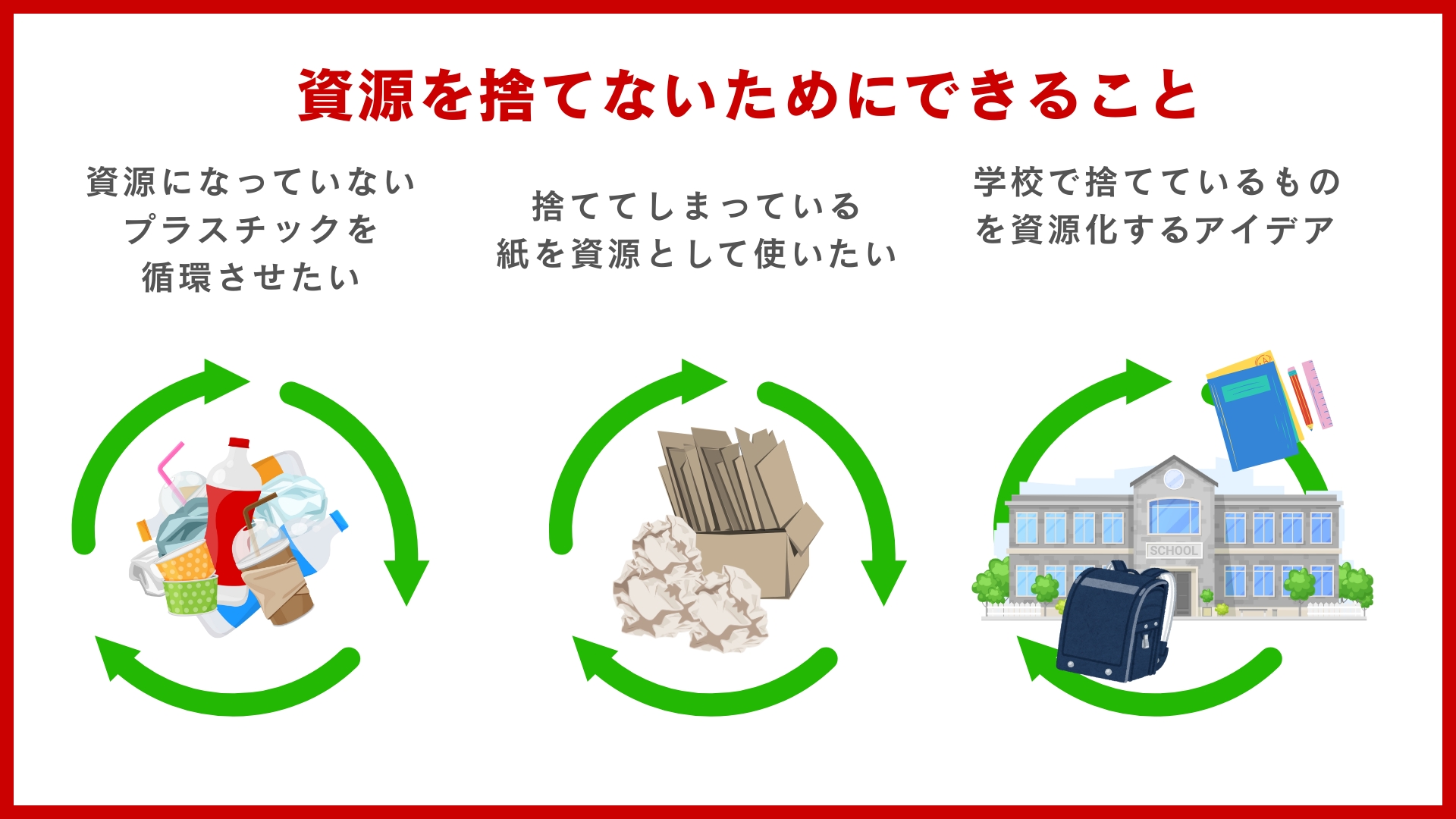 以下①~③のいずれかの形式 ①3コマ漫画(縦横比16:9の横型3枚) ①テンプレートはこちら ②ポスター(縦横比16:9の横型1枚) ②テンプレートはこちら ③10秒以内の動画(縦横比 16:9、音声なし、放映の際に音声は流れないため) |