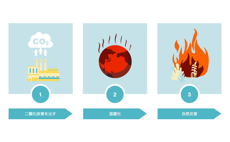 二酸化炭素が増えることにより、宇宙に逃げるはずの熱がこもって、地表が暖められてしまい、気温が上がってしまうのです。